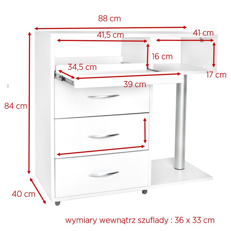 professional podiatry unit, solidly constructed with drawers with a special drawer for the uv-c sterilizer and a shelf for a milling machine. The whole is complemented by a lamp holder, a magnifying glass tube and metal-rubber wheels guarantee mobility. the assistant was created to facilitate the work of the person performing the procedure.