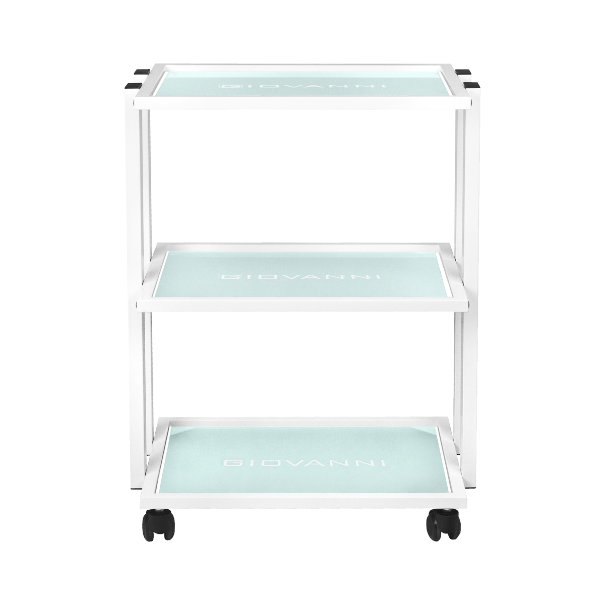 piece of furniture has three glass shelves engraved with the Giovanni logo.