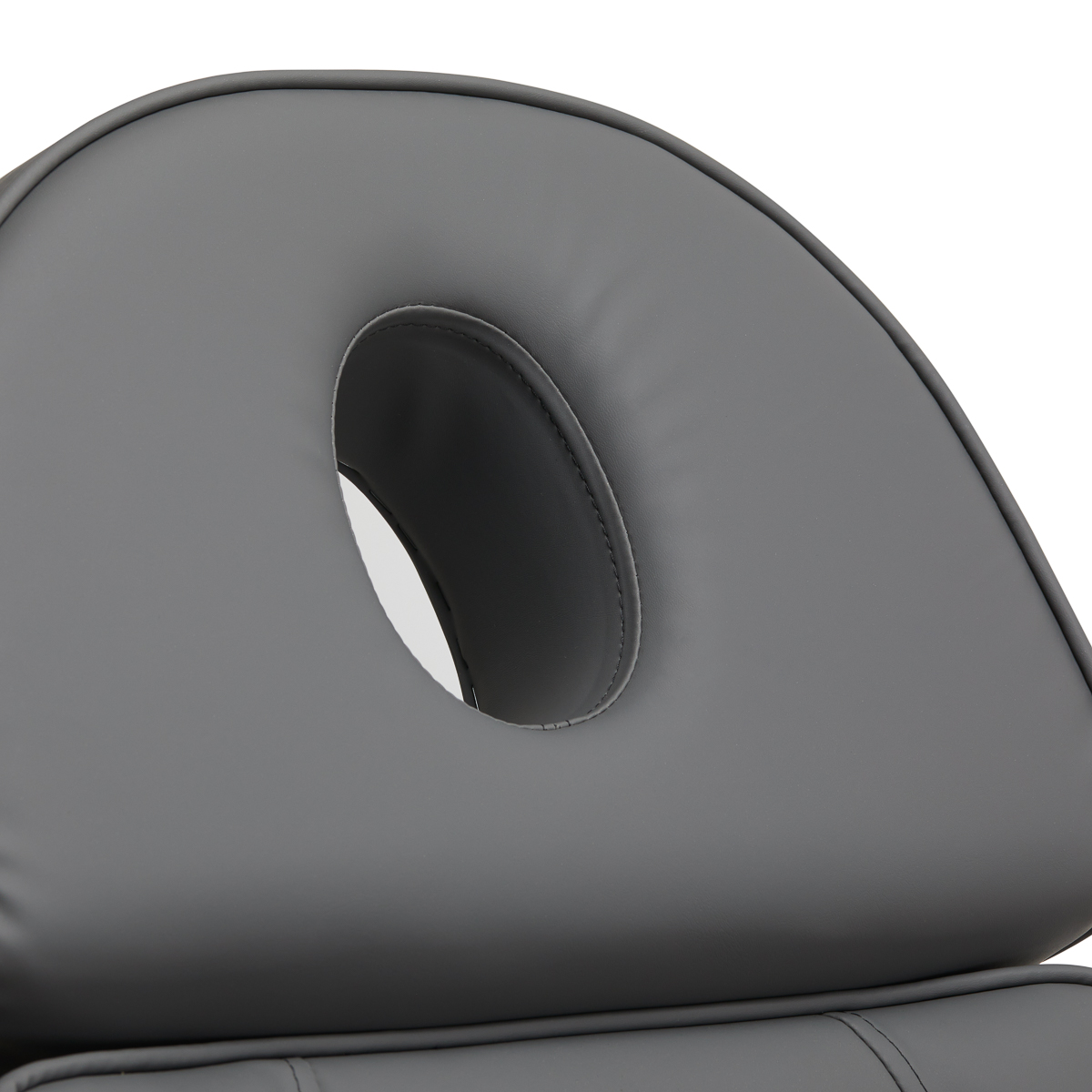 Facilities for both face and body treatmentsThe headrest is extendable, which helps to adjust the equipment to the needs of users of different heights, providing stable support for the head during treatments. A hole in the headrest hidden by a plug and the possibility of freely unfolding the equipment to the position of a couch, which significantly increases its functionality for face and body services. This allows for unproblematic performance of various types of treatments, including cosmetics, physiotherapy or tattooing. The applied solutions significantly improve the comfort of use and work ergonomics.