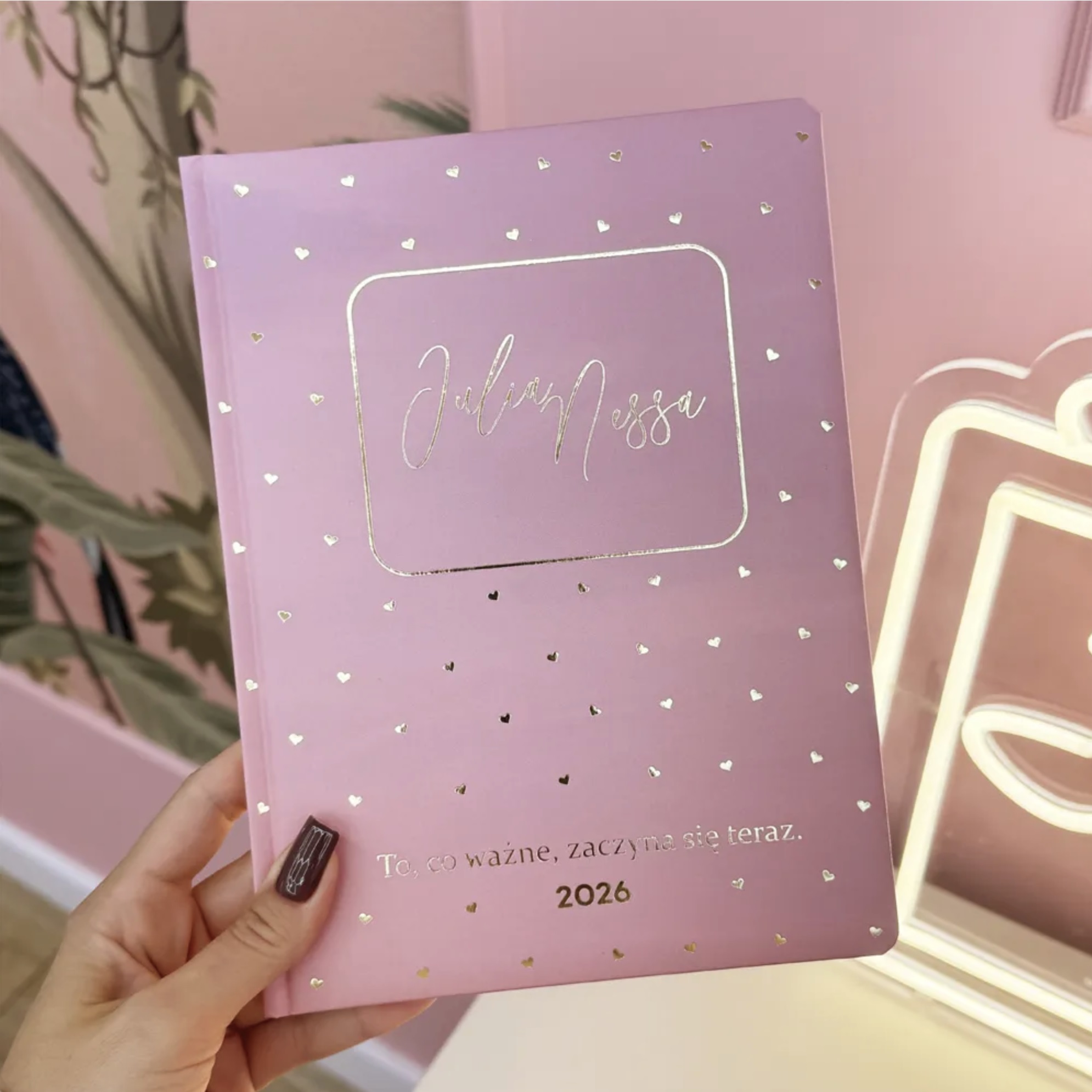 Jak co roku tak i w tym przygotowaliśmy kalendarz. Został zaplanowany w taki sposób, aby pomieścić cały tydzień na dwóch stronach, a format to B5. Takie rozwiązanie pozwoli na swobodne schowanie go torebki bez dodatkowego obciążania jej zbędnymi kilogramami. Piękna różowo-złota kolorystyka znajdzie sobie miejsce w każdym salonie kosmetycznym, ale także domowym zaciszu.