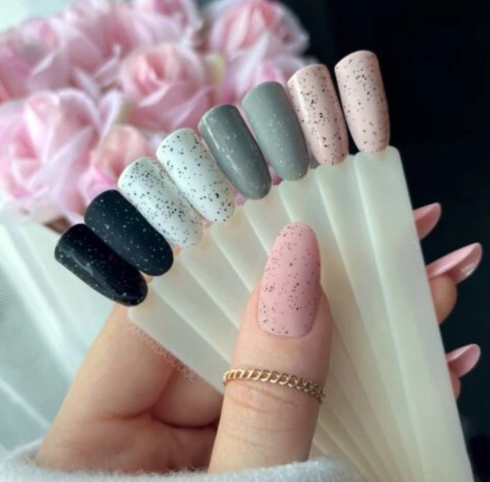 Semilac Top No Wipe Matt Stone Effect - is a simple way to spectacularly change your favorite manicure, giving the manicure a matte finish with the effect of stones. We have enriched the matte top with small black particles that will easily change any look. Manicure finished with a top is devoid of shine and streaks. It creates a pleasant to the touch "suede" finish. Top No Wipe Matt Stone Effect does not have a dispersion layer. The product does not require cleaning with a Cleaner and has a consistency similar to Semilac Top Mat Total No Wipe. Before each use, mix the product thoroughly.