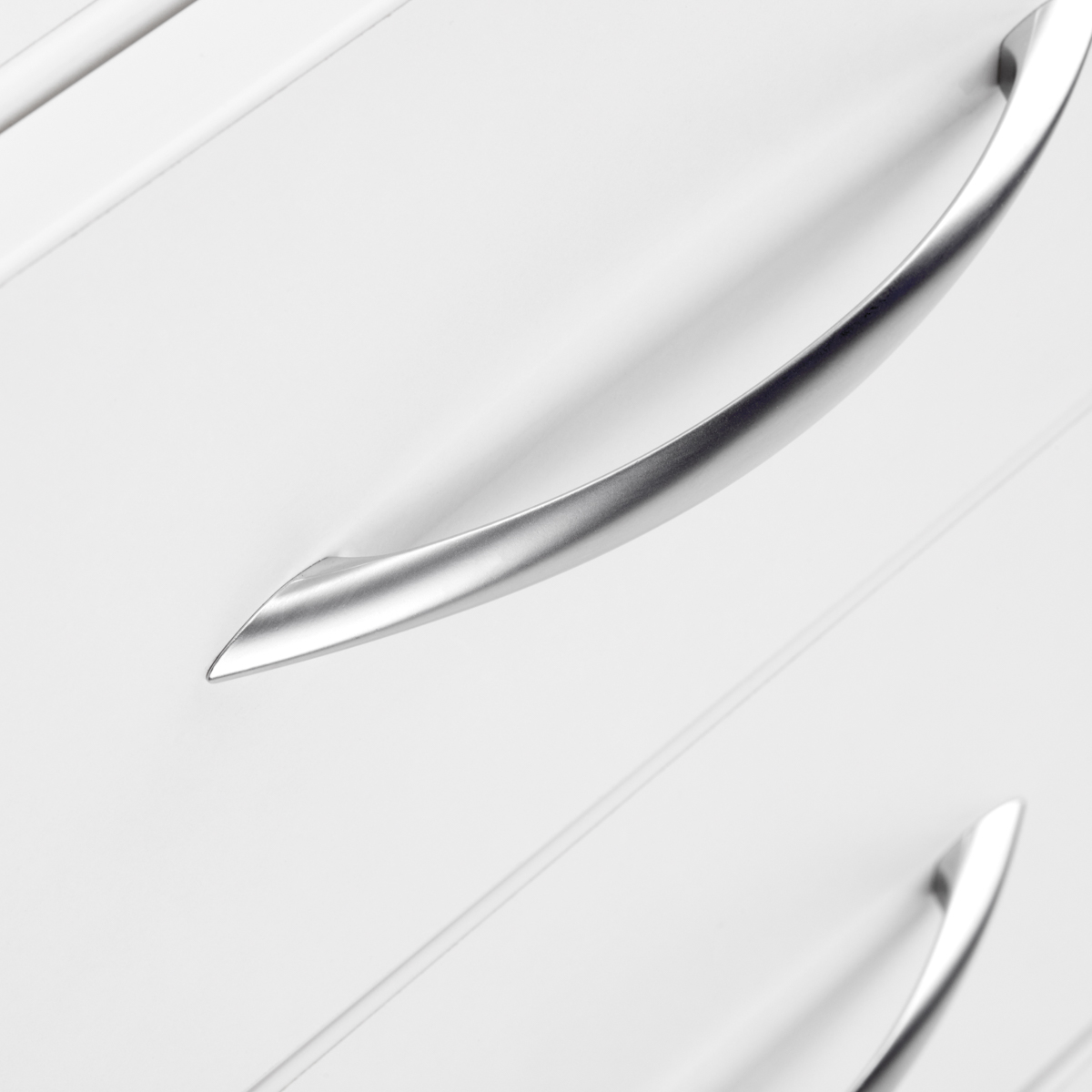 cabinet with 3 drawers on white roller guides. the cabinet has wheels installed, which allows it to be easily moved across the floor.