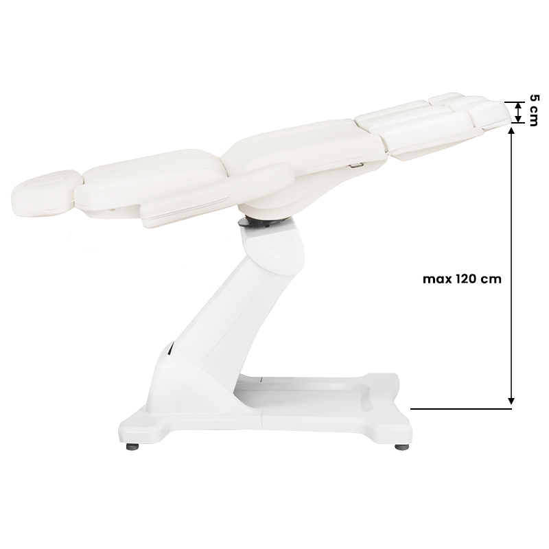 electric cosmetic chair, ideal for beauty salons and spa salons. thanks to independent motors, it enables the seat to be adjusted in 5 planes by means of a remote control, giving the possibility to perform facial and body treatments. The chair has an innovative solution that allows the seat to be rotated 180 degrees around its axis. using the remote control, we can adjust the height of the chair, the inclination of the backrest and footrests and set the seat to the cradle position.
