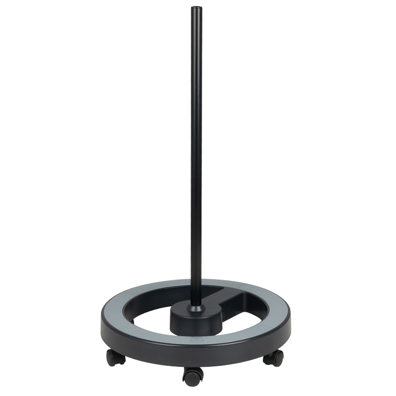 tripod is used to mount an elegante lamp. made of painted steel. installed wheels facilitate sliding on the floor.