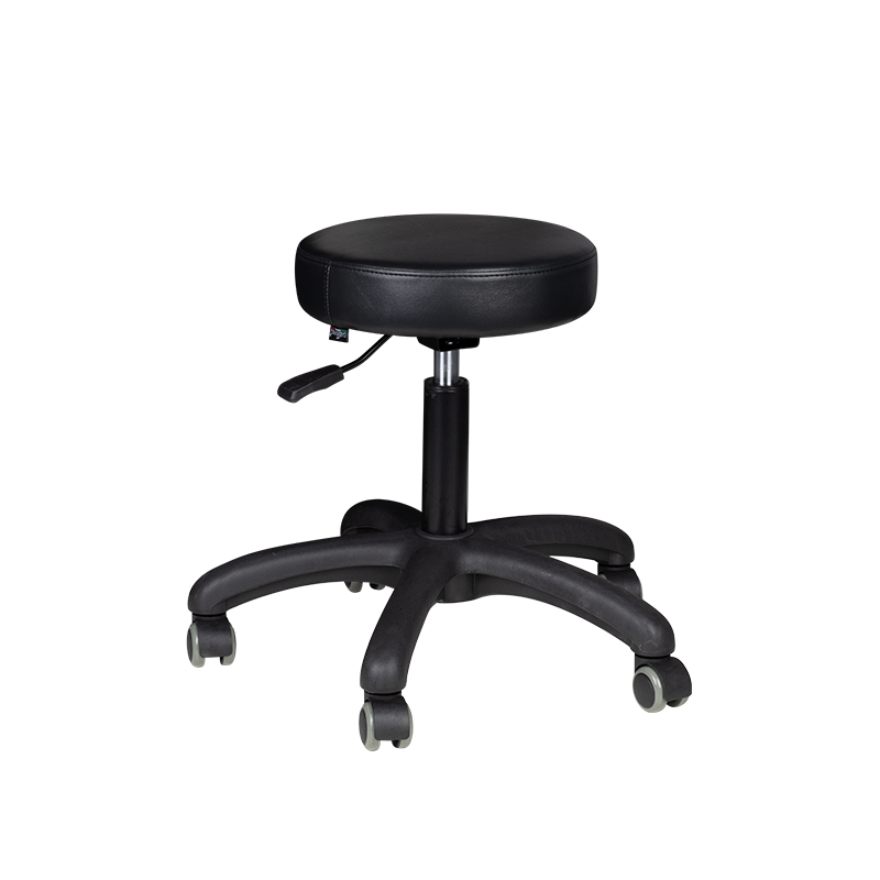 comfortable cosmetic stool, stable on a five-star base, with rubberized wheels. necessary piece of furniture in a beauty salon.