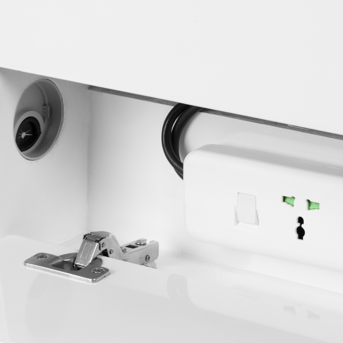A high-quality podiatry helper is a functional cosmetic piece of furniture on wheels. Thanks to your mobility, you can transport it to other treatment rooms. The assistant has a glass worktop, drawers for tools, accessories and a shelf for a podiatry milling machine or other device. One drawer has a built-in UV-C lamp for better sterility of tools and accessories.