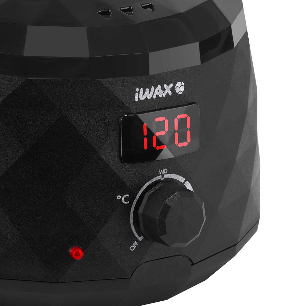 Professional wax heater for skin epilation, in a unique design. The heater is safe and easy to use. It allows for efficient adjustment of the wax temperature visible on the display. Includes easy-to-pull aluminium bucket.