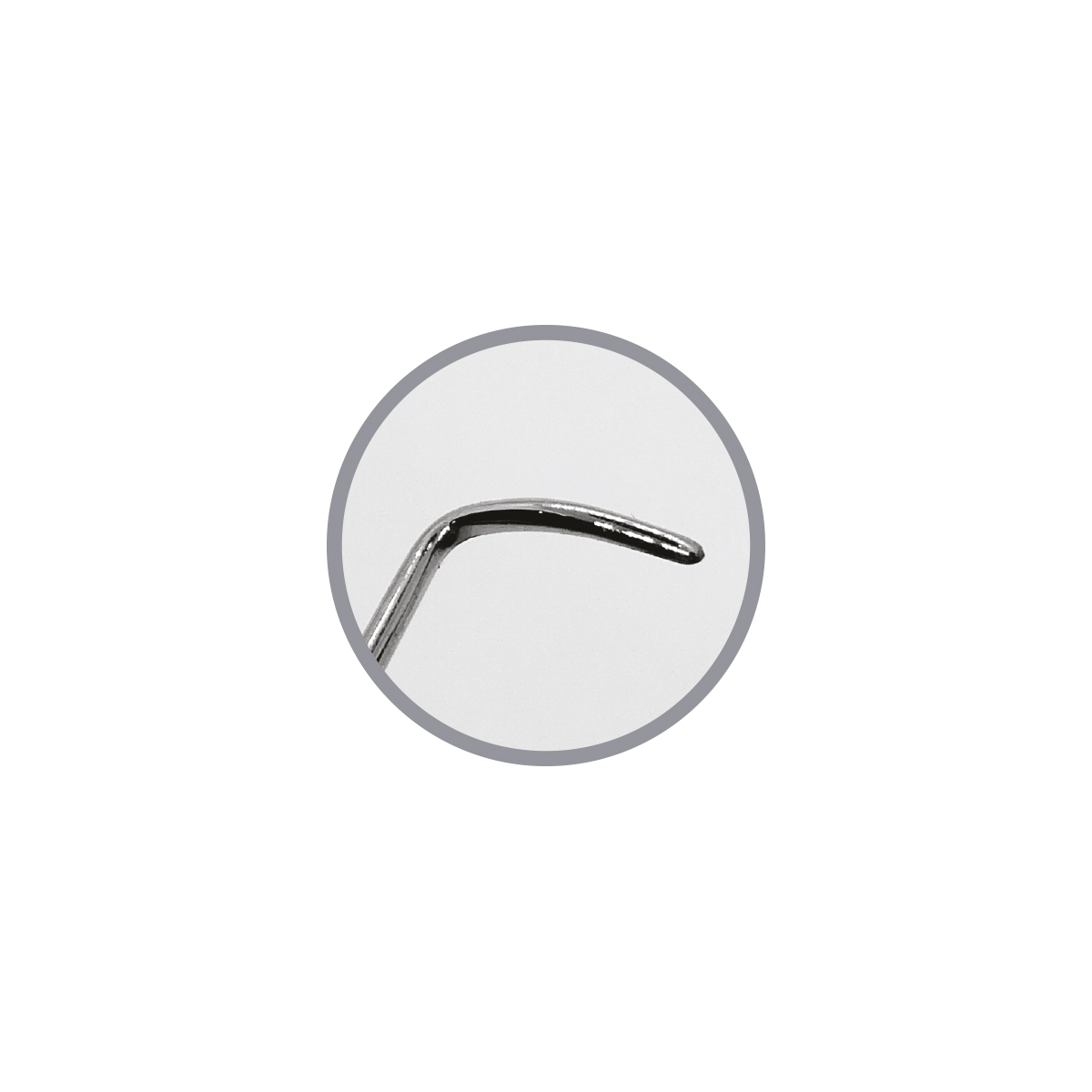 Podiatry probe M is made of the highest quality stainless steel. The tool is designed for inserting tamponades and for cleaning the spaces near the nail shafts. The probe has an extremely comfortable handle. The optimal size of the tool ensures safety when used by beginners. The probe is suitable for sterilization in an autoclave.