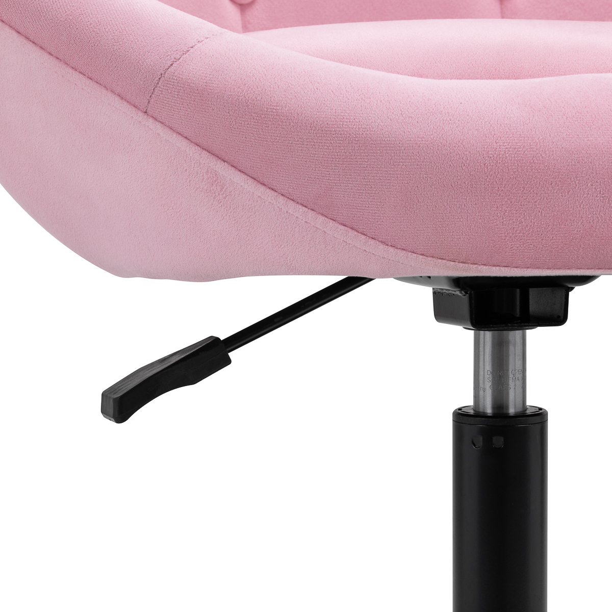 Elegance and comfort of useThe luxurious finish makes the furniture eye-catching. The pleasant-to-the-touch, velvet upholstery in shades of pink and decorative quilting give it a unique character. A stable, round base in shades of black adds elegance, perfectly matching the velvet. Aesthetics of workmanship, comfort of use, ergonomically profiled backrest and aesthetic quilting make the chair meet the requirements of even the most demanding users.