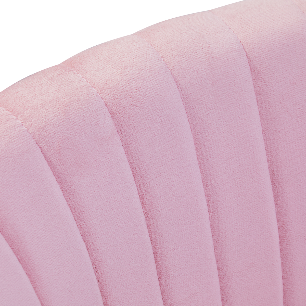 Stylish finishThe hocker is distinguished by pleasant-to-touch, velvet upholstery in shades of pink, giving it an exclusive character. Stylish stitching on the hocker’s backrest emphasizes its elegant look and careful workmanship. The round base with non-slip rubber ensures stability, while the gold color harmonizes with the velvet upholstery, giving the furniture a refined style. Thanks to its ergonomically contoured seat and adjustable height, the hocker is an ideal choice for those who appreciate both style and comfort.