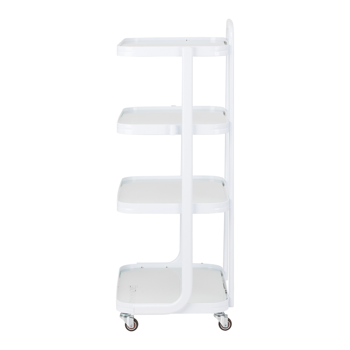 Design for high functionalityA simple design, a frame made of durable aluminum in the shades of white and glass shelves make the table both aesthetic and easy to keep clean. Four wheels allow easy rearrangement, which significantly facilitates work in the salon, and solid materials guarantee long term durability and stability. Elegant finishing adds to its unique appearance, enhancing the aesthetics of any interior.