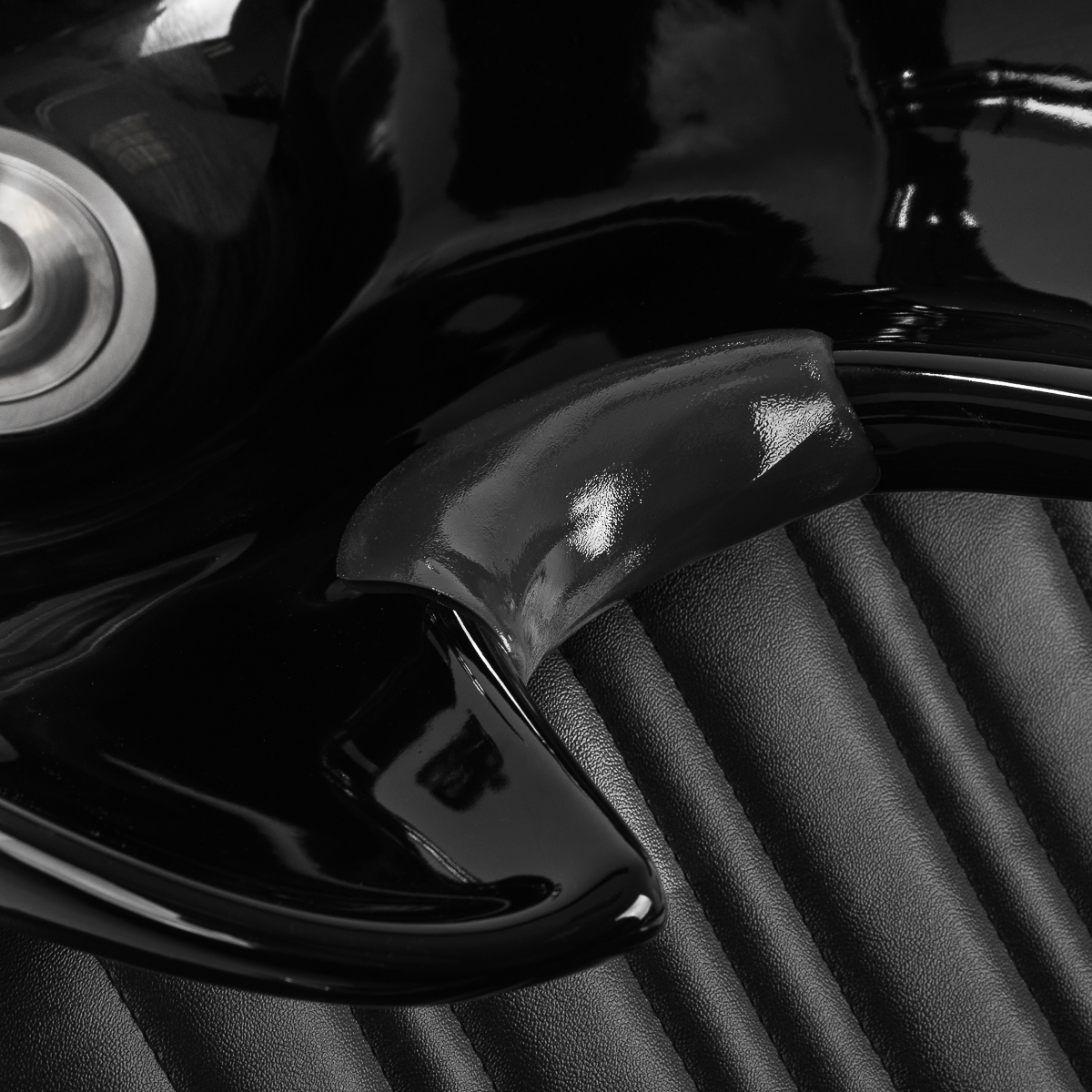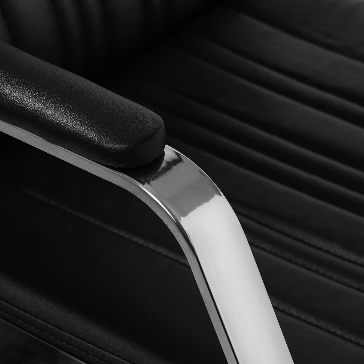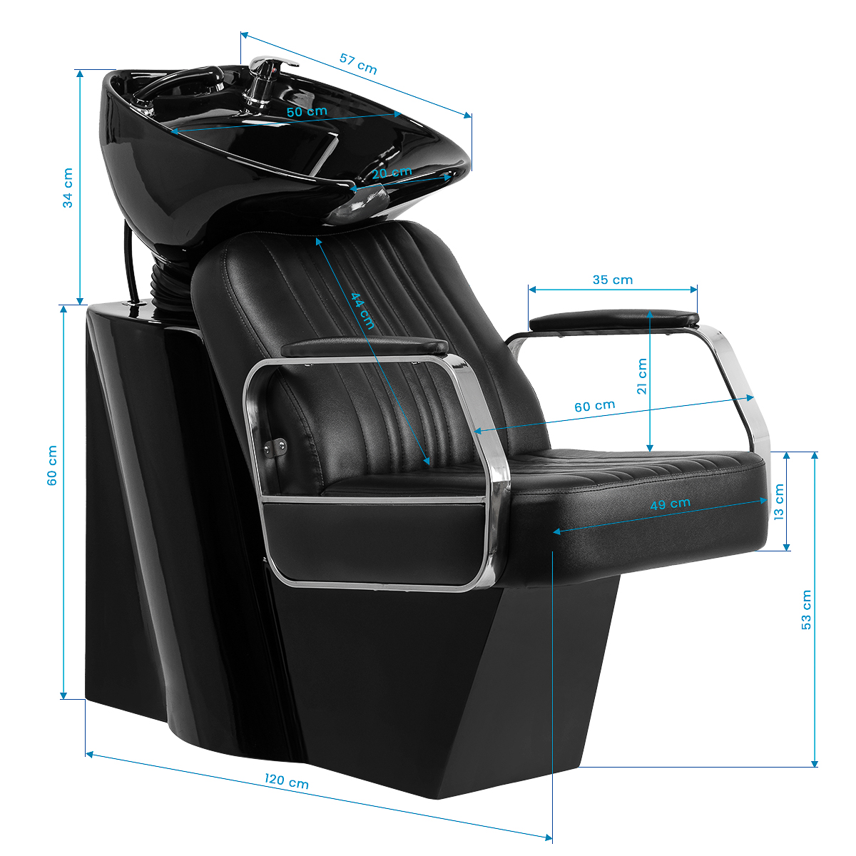 A functional piece of furniture with an elegant twistThe profiled seating, filled with durable foam, ensures comfort, while the upholstered armrests facilitate proper positioning of the customer's shoulders. The backrest placed at an optimal angle promotes excellent support for the spine. The synthetic leather cover in shades of black guarantees long-term durability and easy cleaning. Stylish stitching on the upholstery gives the hair wash a character inspired by automotive design, emphasizing its impressive visual appearance. It comes with complete fittings in chrome and black tones, including a faucet, shower handset, and dedicated hoses to ensure a complete set of tools for the job.