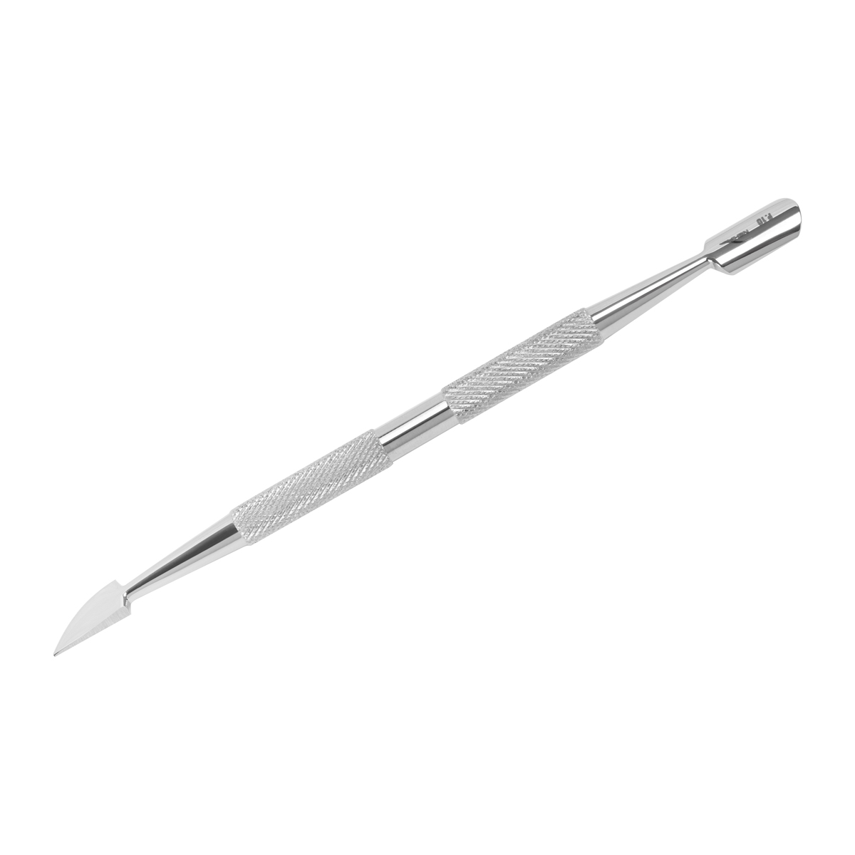 Tools for comprehensive cuticle preparationThe nippers are designed for easy and safe cuticle removal. Their ergonomic shape provides a comfortable grip, while the extremely sharp blades allow for precise cutting without the risk of damaging the skin. Made from high-quality stainless steel, they are corrosion-resistant and easy to disinfect. The double-sided hoof is a versatile tool that allows both gentle pushing back of cuticles and their effective removal. One tip is a rounded pusher, ideal for shaping and pushing back cuticles without irritation. On the other side is the tip in the form of a bevelled triangular cutter, which allows you to precisely remove stubborn, keratinised sections of the epidermis.