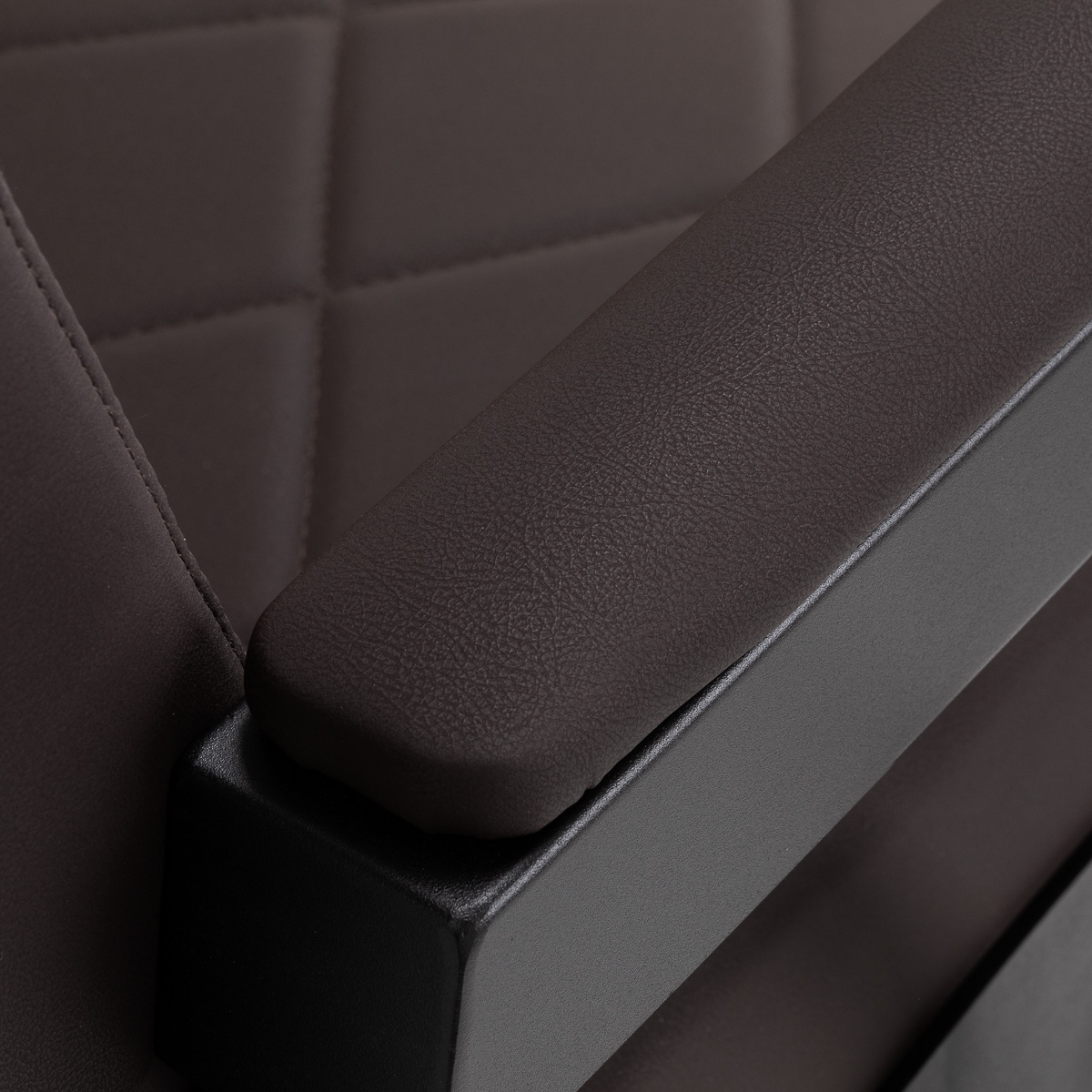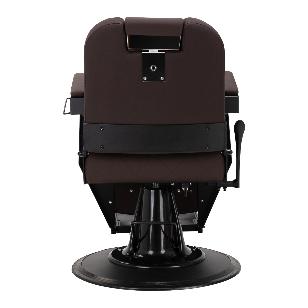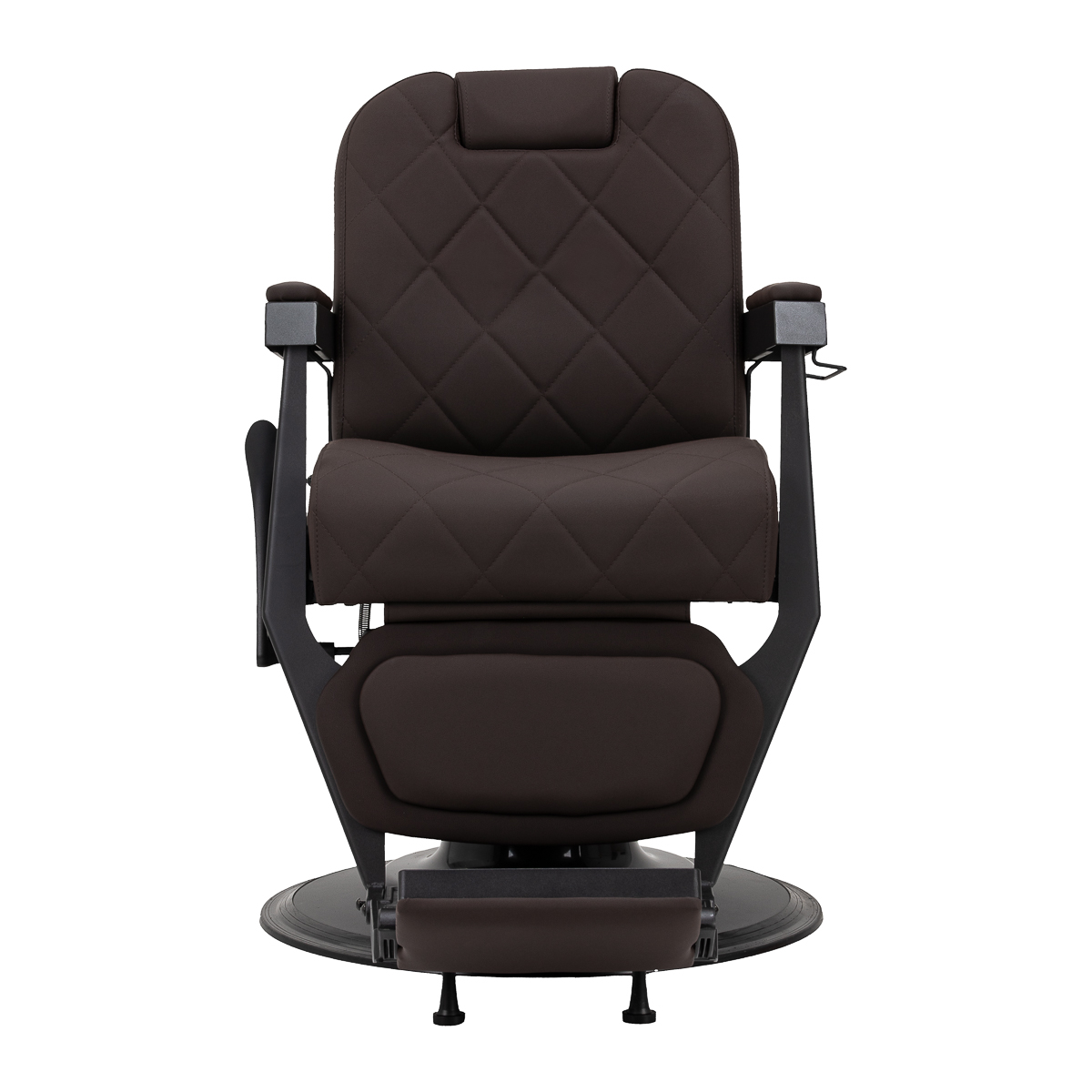 The stable construction ensures safety and long-lasting durability. The seat, filled with deformation-resistant foam, and upholstery made of soft, synthetic leather ensure durability and comfort. The moisture-resistant materials are not only durable but also easy to clean. The brown upholstery combined with a black frame gives the chair a modern and professional look, while its minimalist style allows it to fit into the décor of any barbershop.