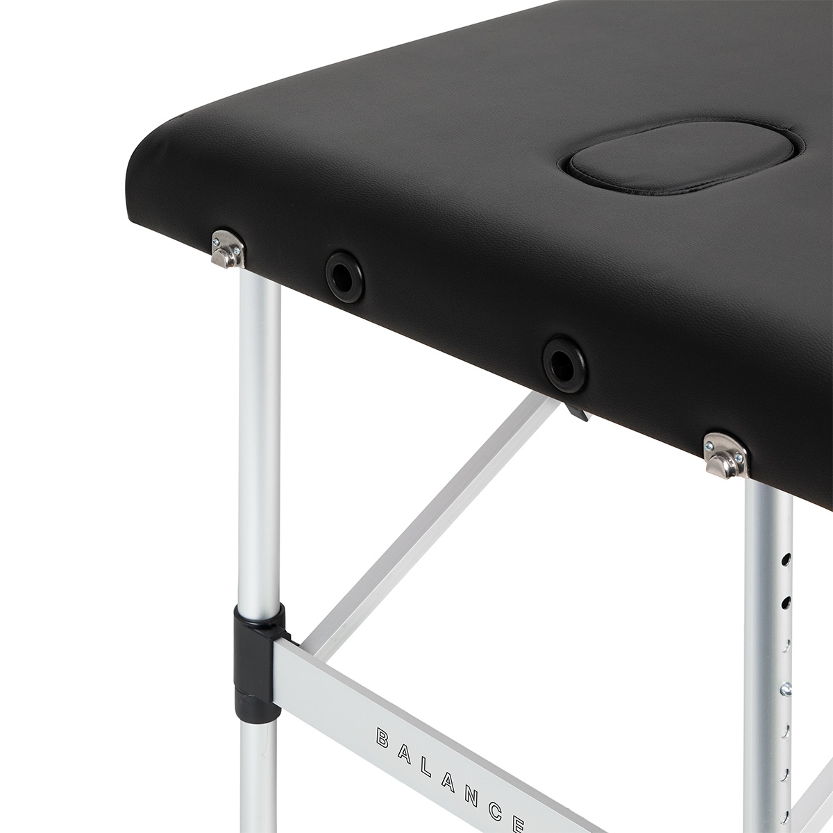 Thoughtful choice for yearsThe BALANCE massage table has been designed with comfort and durability in mind. Soft imitation leather upholstery and a foam filling with optimum firmness ensure comfort during treatments. The materials are resistant to moisture, easy to clean and durable, which makes the table perfect for everyday work. The aluminum legs increase the stability of the structure, and thanks to its resistance to moisture, the table can also be safely used in places such as fitness clubs or locker rooms.