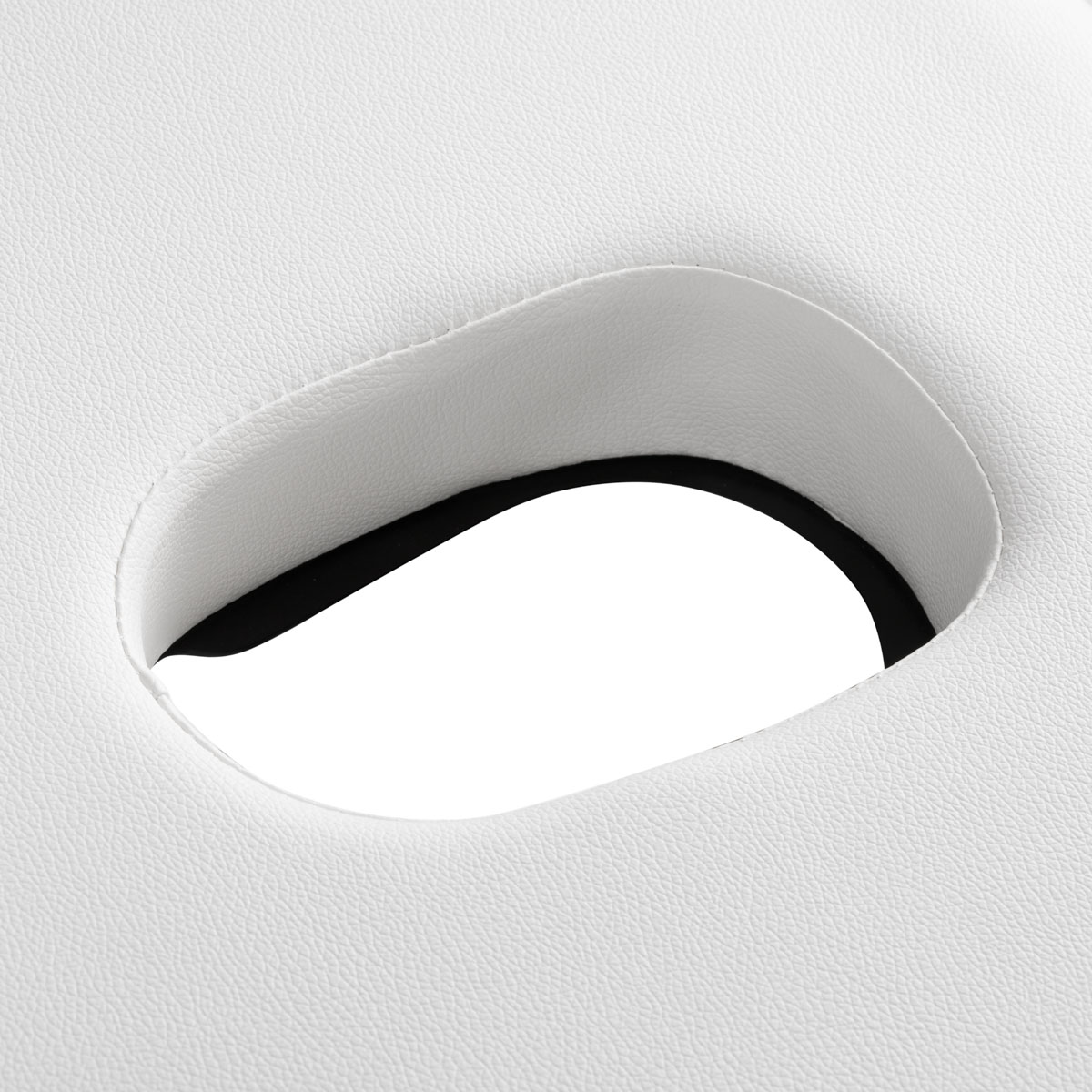 Comfort of treatments performed on the backTo ensure maximum comfort, the person using the table can rest their head on the ergonomic headrest, which is included in the set. This element is easy to adjust – it allows the angle to be adjusted in two planes, which makes it possible to precisely adjust its position to the user's needs and the nature of the treatment being performed. For supine therapy, the headrest can be removed, using a special hole in the tabletop instead. When not in use, the hole can be covered with the included plug, restoring the surface to an aesthetic and uniform appearance.