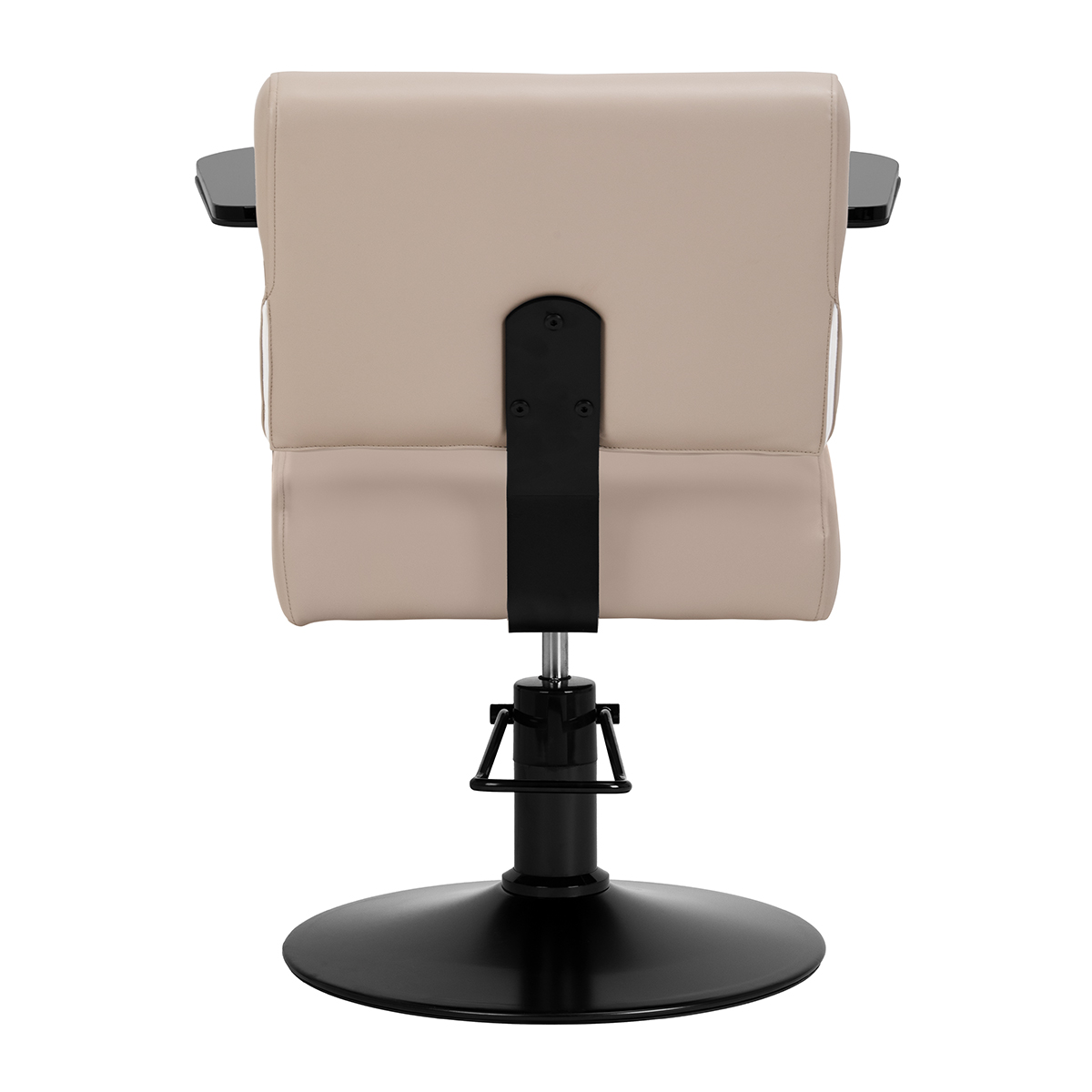 The seat is filled with durable, deformation-resistant foam and covered with synthetic leather, ensuring comfort and long life. The materials are moisture-resistant, easy to clean and suitable for intensive use in salon conditions. The beige upholstery gives the chair an elegant, timeless character that harmonises with the black structural elements. The modern design makes the Hair System Jet hairdressing chair an aesthetic and functional piece of equipment for professional hairdressing salons.