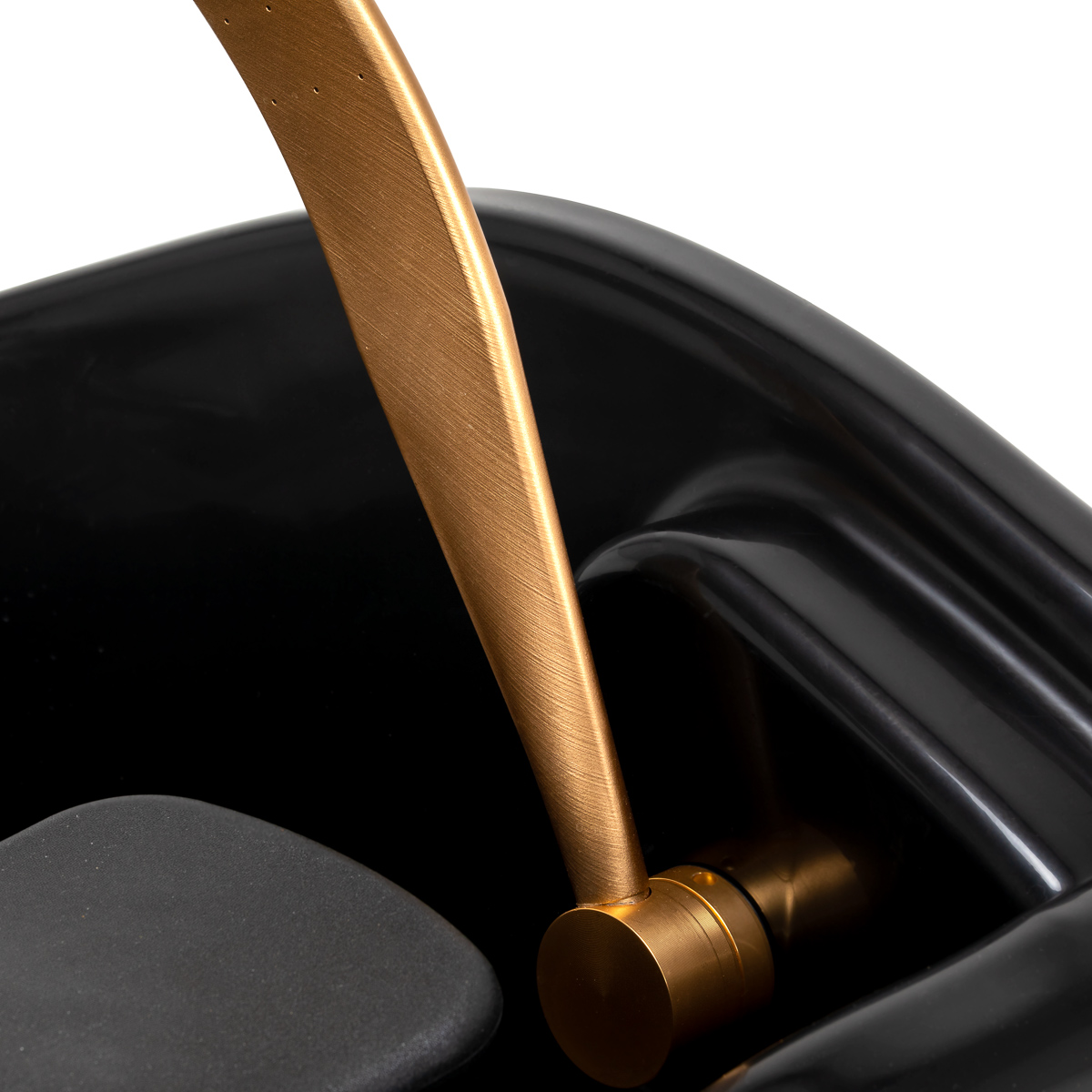 A practical basin for user comfortThe deep plastic basin in an elegant shade of black effectively minimises splashing of water and cosmetics, ensuring a clean environment and comfortable working conditions. Made from durable materials, it is robust, and its smooth surface makes maintaining hygiene quick and hassle-free. The height-adjustable headrest allows for a perfect fit to the user’s needs, ensuring maximum comfort. The combination of functionality and modern design raises the standard of any professional space.