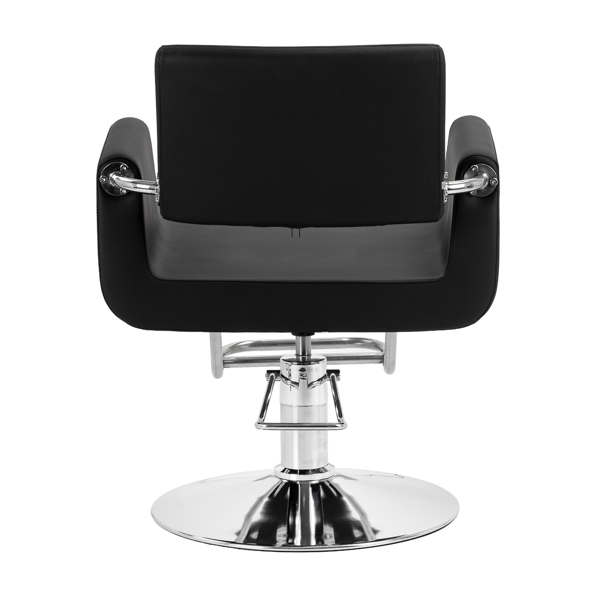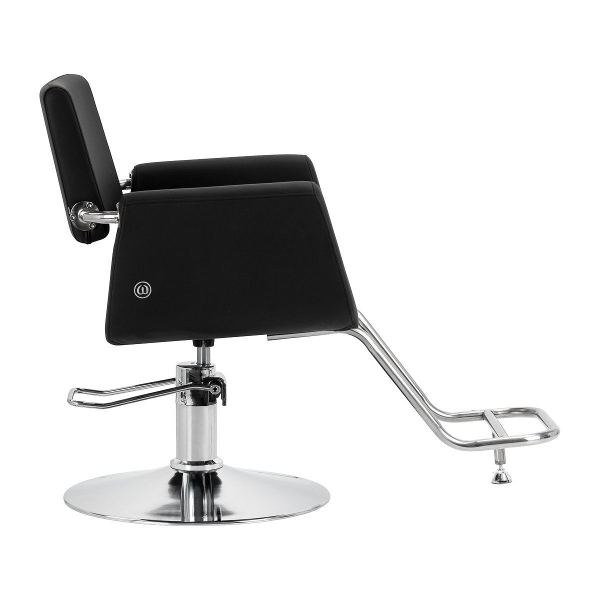 Modern elegance with a professional touchThe model stands out with its minimalist design inspired by modern style. The upholstery, made of high-quality synthetic leather in classic black, gives the chair an elegant look, whilst its surface is moisture-resistant and easy to keep clean. The base and metal footrest emphasise the chair’s modern character, creating a cohesive and aesthetic form that blends well with a variety of hairdressing and barber salon interiors.