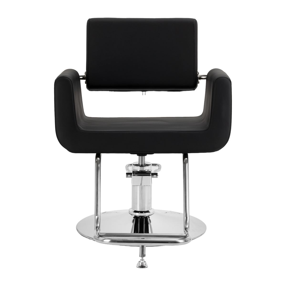 A minimalist hairdressing chair with a light formThe Omega Lyra hairdressing chair combines minimalist design with the functionality essential for everyday work. The distinctive open space between the seat and the backrest lends the structure a sense of visual lightness and emphasises the model’s modern style. The hydraulic lift allows for smooth height adjustment, whilst the matching footrest provides comfortable support for the feet during treatments. The model fits perfectly into the design of modern and elegant hairdressing salon interiors.